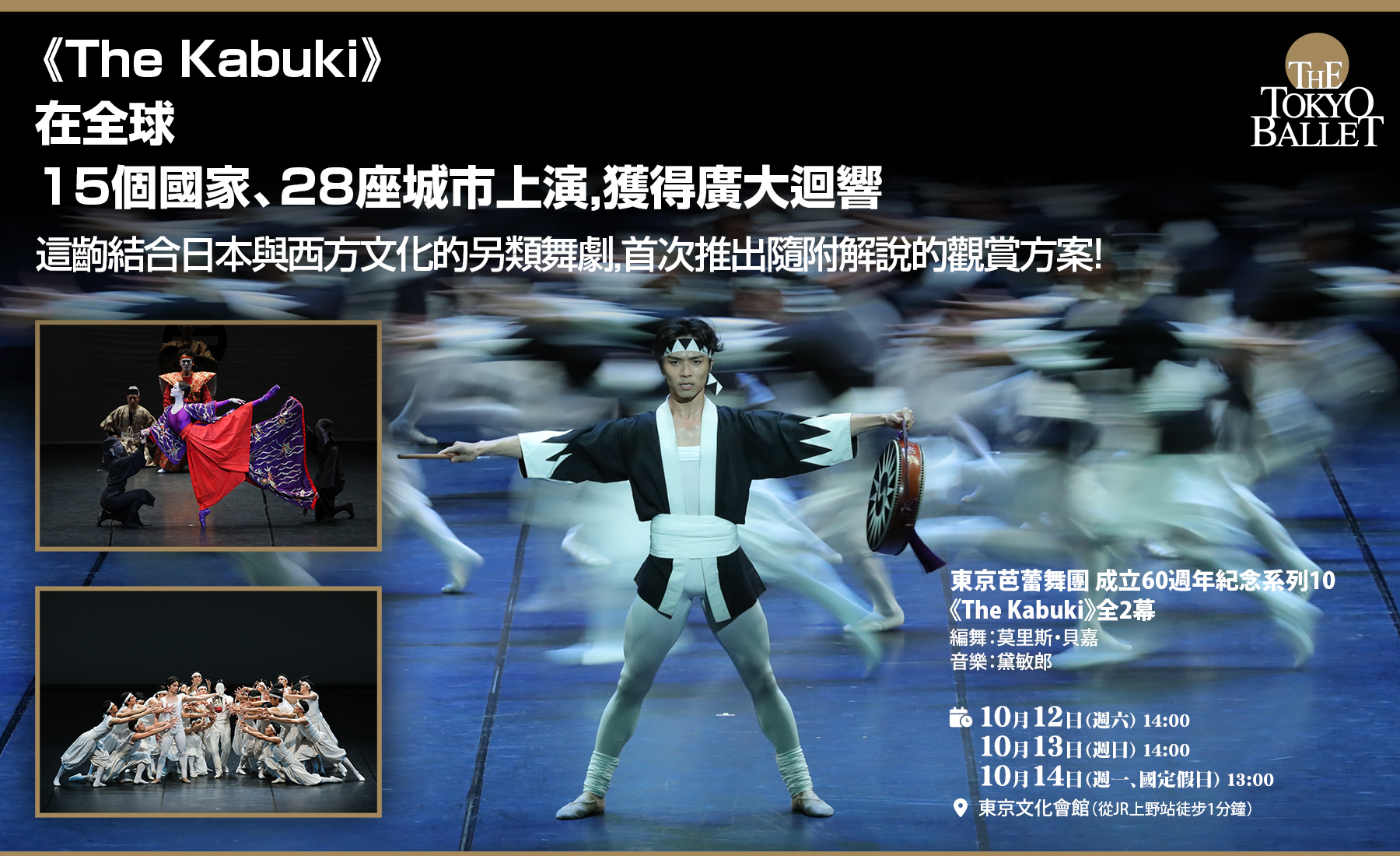 「歌舞伎」為日本的傳統表演藝術,將歌舞伎融入西洋的芭蕾舞劇,是本次公演最大的看點。本劇是由芭蕾舞界的巨匠「莫里斯・貝嘉」擔任編舞。這齣舞劇自1986年首演以來,在巴黎歌劇院、米蘭斯卡拉歌劇院等歐洲主要城市的劇院上演,獲得熱烈好評。之後,更成為東京芭蕾舞團的代表作,在日本國內外多次舉行公演。