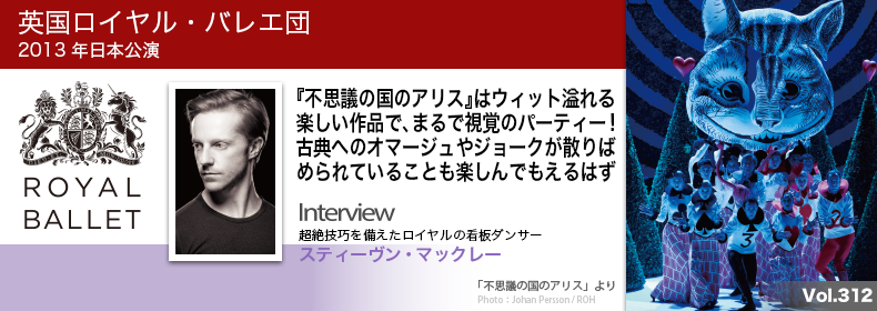 マックレー:カンパニーは今までも長い間、未来に向けて変革を起こそうとして来たんだ。新作を作り続けることはバレエ団を健全に保つのに必要不可欠だからね。芸術監督が交代したこともあって、確かに、現在カンパニーは変革の時期にあると思う。でも(前芸術監督の)モニカ・メイスンが退任のスピーチで話したように、変化は良いことで、変化を恐れてはいけない。うまく扱うことが出来れば、変化は成功をもたらすし、素晴らしいものになるのだから。ロイヤル・バレエは今でも最高のカンパニーのひとつだけど、これからもっともっと、今まで以上にさらに高いところへ飛翔するのを見せられると思うよ。