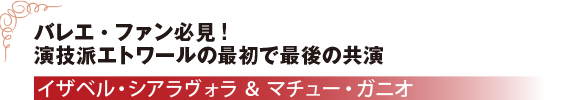 「マノン」「オネーギン」ではすでに舞台を共にしているものの、イザベル・シアラヴォラとマチュー・ガニオが「椿姫」の全幕を一緒に踊るのは、意外にも東京公演が初めてである。