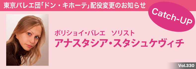 これを受けて、振付家ウラジーミル・ワシーリエフとオブラスツォーワに代わる出演者を検討したところ、氏のヴァージョンを踊る上で信頼するに足るダンサーとして、ボリショイ・バレエのソリスト、アナスタシア・スタシュケヴィチが最善との判断に至りました。