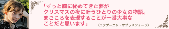 「ずっと胸に秘めてきた夢がクリスマスの夜に叶うひとりの少女の物語。まごころを表現することが一番大事なことだと思います」 (エフゲーニャ・オブラスツォーワ)