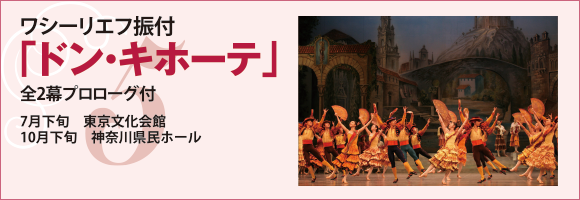 また、すでに東京バレエ団の"看板"演目の一つとなっているワシーリエフ振付「ドン・キホーテ」は、世界バレエフェスティバルの全幕特別プロのほか、10月にも公演が行われます。