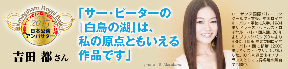 「サー・ピーターの『白鳥の湖』は、私の原点ともいえる作品です」 吉田 都さん ローザンヌ国際バレエコンクールで入賞後、英国ロイヤル・バレエ学校に入学。1984年サドラーズ・ウェルズ・ロイヤル・バレエ団入団、88年よりプリンシパル(90年よりBRB)。1995年に英国ロイヤル・バレエ団に移籍(2006年よりゲスト・プリンシパル)した。10年の退団後はフリーランスとして世界各地の舞台で活躍中。