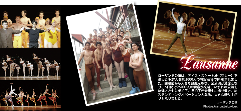 Lausanne ローザンヌ公演は、アイス・スケート場(マレー)を使った収容人数約5000人の特設会場で開催されました。開幕前から大きな話題を呼び、全公演が満席となり、5日間で25000人の観客が来場。いずれの公演も終演とともに手拍子、足拍子が会場中に鳴り響き、総スタンディングオベーションとなる、大きな盛り上がりとなりました。 ローザンヌ公演 Photos:Francette Levieux
