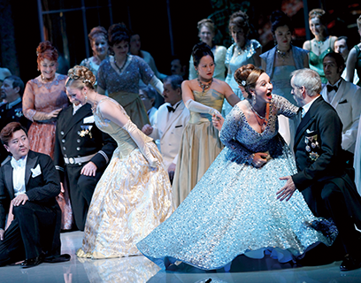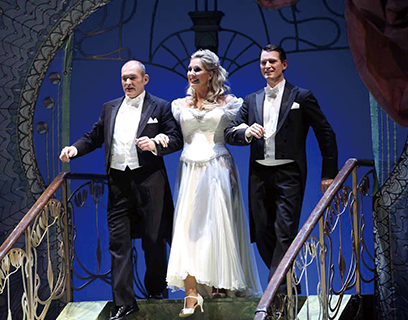 レハール作曲の『メリー・ウィドウ』は、『こうもり』とならぶウィーン・オペレッタの超人気作品。1905年にウィーンで初演されると、その評判はまたたく間に世界中にひろがり、20世紀でもっとも成功した音楽劇になった。英訳のタイトルで呼ばれるということからも、その人気がドイツ・オーストリアだけのものではなく、まさにグローバルなものであることがわかる。舞台は初演当時、つまりベル・エポックの時代のパリ。バルカン半島の架空の小国ポンテヴェドロのパリ駐在大使館員でキャバレー〈マキシム〉に通いづめの伊達男ダニロと、同じ故国で莫大な遺産を相続してパリに遊びにきた「メリー・ウィドウ(陽気な未亡人)」ことハンナの、ひと筋縄ではいかない恋のなりゆきが物語の本筋だ。ふたりはかつて故国で愛し合いながらも結ばれず、いまも互いに心惹かれつつも意地を張り合い、ストレートに愛を打ち明けることができない。このちょっとむずかしいメイン・カップルに、よろめきがちな若い大使夫人と彼女に迫る粋なパリ男とのもうひと組のカップルがからんで、ハラハラ・ドキドキのラブコメディが展開する。話のおもしろさも第一級だが、レハールの音楽が流麗かつ甘美そのもの。パリの粋な雰囲気が全編にあふれ、バルカン地方の素朴な歌の響きや民族色豊かな踊りもたいへん魅力的だ。物語はウィーンとは無関係だが、そこはやはりウィーン・オペレッタ、ワルツの曲もたっぷり盛り込まれている。名曲「メリー・ウィドウ・ワルツ」をはじめダニロが歌う「マキシムの歌」、ハンナが歌う「ヴィリアの歌」、妻や恋人にやられっぱなしの男たちが思う存分ウップン晴らしをする「女行進曲」、ダニロが昔話にこと寄せてハンナへの熱い思いを打ち明ける「王子と王女の物語」…。どれも心奪われる歌ばかり。そして最後には、大使夫人がリードして〈マキシム〉の踊り子たちがフレンチ・カンカンを踊りまくる最大のクライマックスが用意されている。まさに心を蕩けさせる官能的な魅惑にあふれた、じつにお洒落な大人の女と男のためのオペレッタだ。