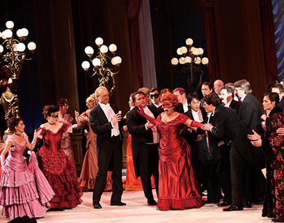 ヨハン・シュトラウス2世作曲の『こうもり』は、だれもが認めるウィーン・オペレッタの最高傑作。ワルツ王シュトラウスのノリにノッた音楽のすばらしさもさることながら、ストーリーもとびきり良くできていて、楽しいことこの上ない。舞台は初演(1874年)当時のウィーン近郊の温泉地。カネとヒマを持て余しているロシアの侯爵が開催する豪華な夜会に、すこぶるキャラの立った人物たちが招待されて集まる。彼らはみな、そこでいつもとは違う自分になろうとする。浮気な亭主アイゼンシュタインはフランスの貴族に、その女房ロザリンデはハンガリーの貴婦人に、彼らの家の小間使いアデーレは売り出し中の女優に、こわもての刑務所長フランクはフランスの粋な紳士に、といった具合。仮面劇となりすましの中で、「フランス貴族」は自分の女房とも知らずに「ハンガリーの貴婦人」を口説こうとして、やがて手痛いしっぺ返しを食らうことになる。すべては、かつてアイゼンシュタインに大恥をかかされてリベンジの機会を窺う、「こうもり博士」ことファルケ博士の周到なたくらみだったのだ…。シュトラウスの音楽のすばらしさは、ワクワクさせる序曲からしてすでにきわ立っている。幕が開けば、どの歌もどの場面もウィットにあふれ、スパイスも効いて極めつけの楽しさだ。ロザリンデを口説く声楽教師アルフレートの殺し文句は「憂さを忘れて幸せに!」。そして、夜会の合い言葉は「とことん楽しめ!」。栄華をきわめたハプスブルク大帝国も、『こうもり』の時代には衰退へと向かいつつあった。豪華な夜会に憂さを忘れて陶酔し、「いつまでも今日のように!」と切望する享楽への耽溺のなかに、そこはかとないメランコリーがしのび込む。ウィーンの音楽と芝居の楽しさがこの上なく見事に結合した『こうもり』の魅惑は、ただめっぽう愉快なだけではない、なかなかに奥深いものなのだ。