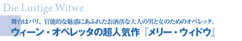 舞台はパリ、官能的な魅惑にあふれたお洒落な大人の男と女のためのオペレッタ。 ウィーン・オペレッタの超人気作『メリー・ウィドウ』