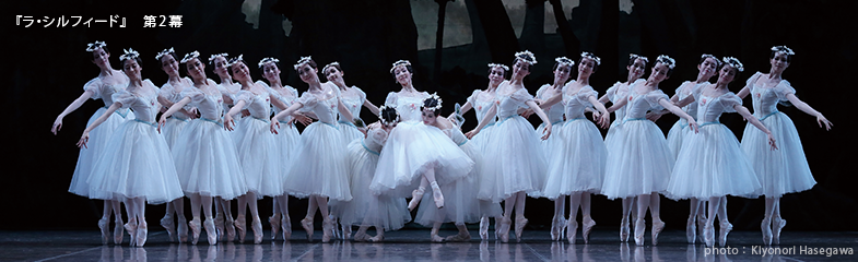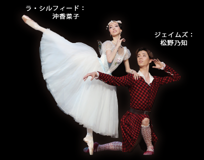 初日には渡辺理恵と宮川新大が主演。前回に続いての登場となる渡辺には清楚な趣があり白いチュチュが良く似あう。脚先の綺麗さは特筆されトウシューズを履いて踊る繊細なつま先の動きもしなやかだ。今年3月の『ジゼル』の表題役でも優美なスタイルが際立った。主役経験も重ねたうえでの再挑戦だけに深まった演技に期待したい。宮川は今年8月のオーディションを経てソリストとして入団したばかり。ドイツのジョン・クランコ ・バレエ・スクールでウラジーミル・マラーホフらを育てた名教師ピョートル・ペストフに学び、ロシア、ニュージーランドのカンパニーで踊った。精確な技術を持ち味とし踊りに力感あふれる。モスクワ音楽劇場在籍時に斎藤と接点があり、斎藤の下で踊りたいと志願しての入団だ。ジェイムズを踊るに足る技量の持ち主だけに渡辺との共演を心待ちにしたい。