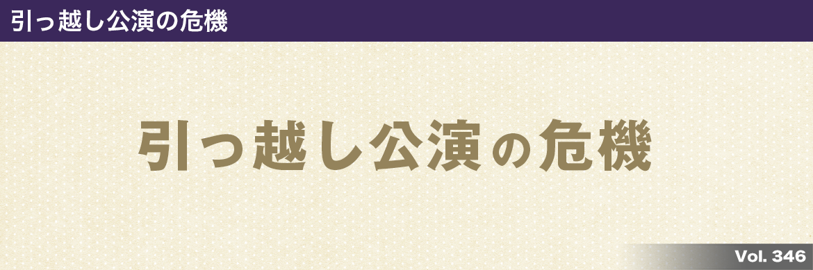 オペラやバレエの引っ越し公演が観られなくなるかもしれません。引っ越し公演は存続の危機に瀕しているといっても過言ではないほど深刻な状況です。