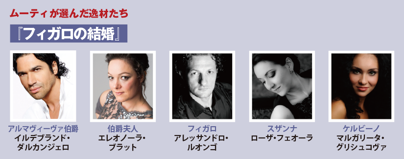 ムーティが選んだ逸材たち『フィガロの結婚』 アルマヴィーヴァ伯爵 イルデブランド・ダルカンジェロ 伯爵夫人 エレオノーラ・ブラット フィガロ アレッサンドロ・ルオンゴ スザンナ ローザ・フェオーラ ケルビーノ マルガリータ・グリシュコヴァ