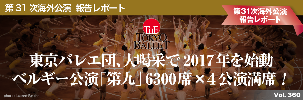 2017年元日、東京バレエ団はモーリス・ベジャール・バレエ団(BBL)との共演による「第九交響曲」公演のため、ブリュッセルへと出発しました。この公演は、2016年5月に予定されていたものですが、折からの社会情勢不安のため、延期されていました。