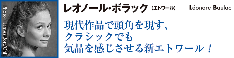 昨年大晦日に誕生した新エトワール、レオノール・ボラック。前芸術監督ミルピエの抜擢に応え現代作品で頭角を現したが、気品あふれるクラシックの素晴らしさも、初めて踊った「白鳥の湖」でエトワールに任命された事実が物語る。