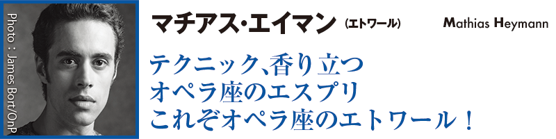 華麗な脚さばき、しなやかな跳躍、優雅な身のこなし。そこから立ちのぼる、えも言われぬ芳醇な香り。そんなオペラ座のエスプリをもっとも体現するエトワールは?と聞かれて、真っ先に脳裏に浮かぶのがマチアス・エイマンである。