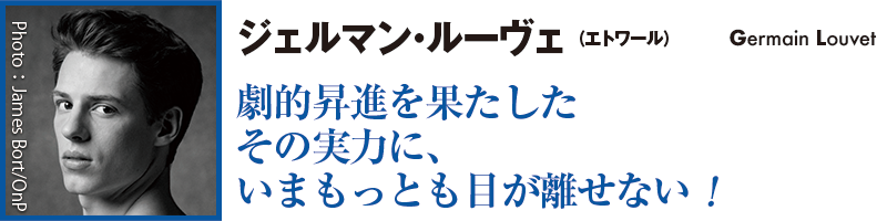 まるで舞台にさわやかな風が吹き込んだよう。昨年観たジェルマン・ルーヴェの印象である。すらりと均整のとれたロマンティックな風貌。豊かな感性で古典から現代作品までをも踊りこなす。飛び級という劇的な昇進劇を果たした新エトワールから目が離せない。