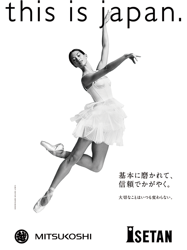 「this is japan.」は2015年よりスタートした三越伊勢丹グループの企業メッセージ。「基本を大切にしながら、未来に向かっていく勇気」をテーマとする2017年のメッセージに、パリ・オペラ座バレエ団のオニール八菜が登場。