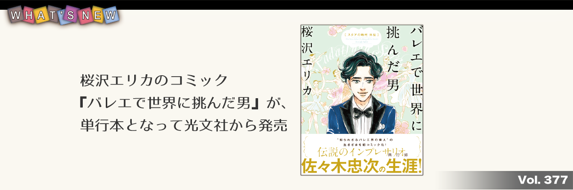 先に「週刊女性自身」誌に15週にわたって掲載された桜沢エリカのコミック『バレエで世界に挑んだ男(スタアの時代外伝)』が、単行本となって光文社から発売されます。