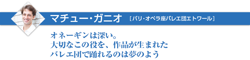 ガニオ:今年のパリ・オペラ座での『オネーギン』上演にあたり、芸術監督のタマシュ・デートリッヒが指導してくれました。技術や音楽性は完璧に、振付も変えませんが、ダンサーの個性に合った提案をしてくれるのが面白い。ダンサーが探求する余地を与えてくれるのです。