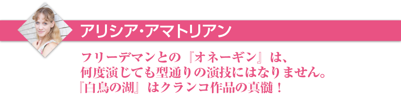 ──11月のシュツットガルト・バレエ団東京公演では、アマトリアンさんは『オネーギン』と『白鳥の湖』に主演、フリーデマン・フォーゲルさんと共演する予定です。
