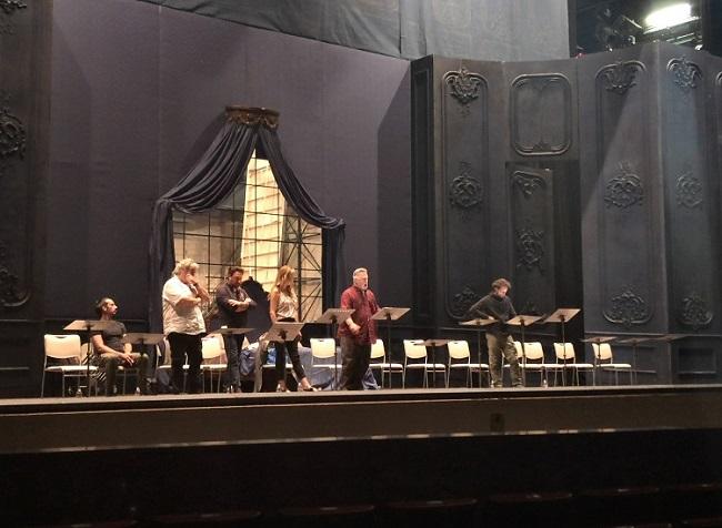初来日となる旬のディーバ、クリスティーネ・オポライスを主役に迎えて、9月16日に神奈川県民ホールで初日を迎えるローマ歌劇場『マノン・レスコー』。ゲネプロでもなくハウプト・プローベでもない、舞台に横並びになった歌手たちとオーケストラによるリハーサルが9月11日に東京文化会館で行われた。舞台セットは、翌日に上演される『椿姫』のままで、そこにクリスティーネ・オポライス、デ・グリュー役のグレゴリー・クンデ、ジェロンデ役のマウリツィオ・ムラーロ、エドモンドのアレッサンドロ・リベラトーレが並んだ。彼らは舞台の左側に並び、少し離れた右側に一人だけレスコー役のアレッサンドロ・ルオンゴがスタンバイしている。ソロ歌手は皆リラックスした私服だが、オポライスだけはリハーサルでの装いも華やかで、シルバーのジャケットとノースリーブのトップス、長い脚を際立たせるスリムパンツが印象的だった。