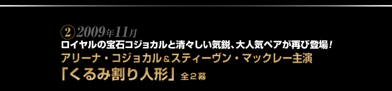 可憐な容姿に精緻な芸術性を実らせ、英国ロイヤル・バレエ団のトップ・バレリーナの座を揺るぎないものにしているアリーナ・コジョカル。優れたテクニックとさわやかな個性で日本初主演を飾ったスティーヴン・マックレー。2007年に日本のバレエ・ファンを魅了した英国ペアが「くるみ割り人形」で待望の再登場。東京バレエ団と息の合った舞台をお届けします。