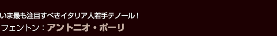 イタリアのヴィテルボに生まれ、ローマで学んだポーリは、現在最も注目すべきイタリア人若手テノールの一人です。2010年にウィーンのハンス・ガボール・ベルヴェデーレ国際声楽コンクール第1位ほか、数々の国際コンクールでの入賞歴が実力の証。また、2011年にリッカルド・ムーティ指揮の聖霊降臨祭音楽祭とラヴェンナ音楽祭『I due Figaro』、ローマ歌劇場の新演出『マクベス』に出演していることも何かを予感させます。かつてムーティは、昨年不慮の事故で亡くなったサルヴァトーレ・リチートラがまだ無名に近かった若手のころに見出し、スカラ座の日本公演に抜擢しました。その後リチートラが世界のトップ・スターになったことは誰もが知るところです。ムーティに度々キャスティングされただけでなく、ヨーロッパではすでに赤マル急上昇の注目が寄せられているポーリに、次代を担う新星登場への期待が膨らみます。