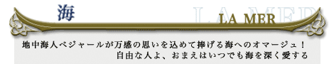 海の陽光が降りそそぎ、きらきらと輝く・・・これは「海」への想い を綴ったベジャールの詩といえるでしょう。