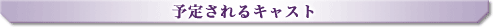 | *表記の配役は2004年3月5日現在の予定です。やむを得ない事情により出演者が変更となる場合がありますので、あらかじめご了承ください。なお、出演者および配役の変更に伴う払い戻し、公演日の振替えはできません。正式な配役はすべて当日発表となります。