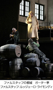ルッジェーロ・ライモンディは伝説的ともいうべき舞台演技の能力を最大限に発揮し、「太鼓腹」ファルスタッフをあますところなく描き出した。 |