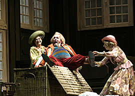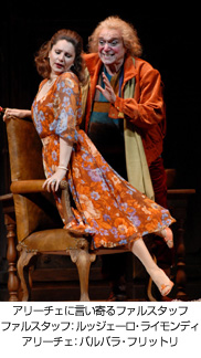 40年のヴェルディの作曲歴のなかでただ一度だけ書かれた喜劇のタイトルロールを演じたルッジェーロ・ライモンディは、現在求めうる最高のファルスタッフを見せてくれた。大ベテランでありながら、ビロードのように滑らかな声は今なお健在であり、この役柄がまさにライモンディのはまり役であることを実感させた。「人生はみな芝居だ」と喝破する零落の騎士ファルスタッフのユーモアを、ライモンディはあますところなく表現した。 フィレンツェ五月音楽祭との共演30周年を迎えたルカ・ロンコーニのエレガントで知的な演出にはひときわ大きな拍手が巻き起こった。 |