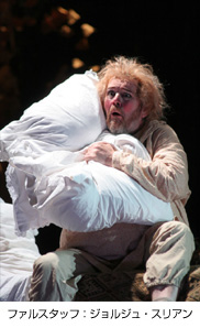 最終幕の宙に浮かんだベッドは、まさにポエティックかつ魅惑的で、夢幻の世界をかいま見せるアイデアであり、それと同時に、周囲から浮いたファルスタッフの孤立ぶりをみごとに形象化している。