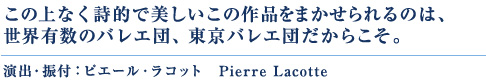 昨年、東京バレエ団でリハーサルを行ったときも、最初は大変だったようですが、最後には素晴らしく仕上がりました。東京バレエ団はコンテンポラリーを踊り、このようなロマンティック・バレエも見事にこなします。他にこの作品を上演できるのは、パリ・オペラ座、デンマーク、英国ロイヤル、ボリショイ、マリインスキーくらいだと思います。共通するのはバレエの“スタイル(様式)”を大事にしていること。バレエというのは本来、作品の魂を観客に伝えて感動を与えるもので、テクニックだけを見せるものではありません。日本には洗練された文化がありますし、観客の方々も多くのカンパニーを見てバレエの知識が豊富です。ロマンティック・バレエの記念碑ともいえるこの作品の魅力も、ぜひ味わっていただけると思っています。