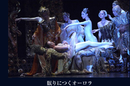 フロリムント王子はオーロラ姫を見つけ、眠る彼女に口づける。周囲の氷が解けだし、再び春が世界に訪れるなか、王子と姫は互いへの愛を語る。自然が花開き、眠っていた人々が目覚め、オーロラ姫がカラボスに囚われていた妖精や生き物が解放される。人間も妖精も一緒になってフロリムント王子とオーロラ姫の愛を、そして世界に調和が戻ったことを祝う。 |