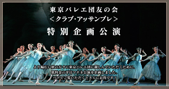 クラブ・アッサンブレにご入会いただくと、東京バレエ団に関する情報が満載された「東京バレエ団通信」をお送りするほか、東京バレエ団を身近に感じていただくための様々なイベントにご参加いただけます。また、東京バレエ団の公演チケットが一般に先駆けて優先的に、しかも割引料金でご購入いただけることも大きな魅力。さらにご購入金額に応じて加算されるポイントをためていただくとチケット料金がさらに割引になり、東京バレエ団の公演を数多く観ていただくほど、また、ご家族やご友人をお誘いいただくほど、ポイントが加算されていくというお得なシステムになっています。ぜひ、この機会にご入会ください。