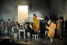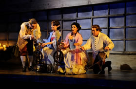 娘たちの奉公先を決める市が始まり、マルタとユリアと名を変えたハリエットとナンシーを、ブランケットたちが見初め、四重唱「ごらんなさい、じろじろ見てるわ」が歌われる。 |