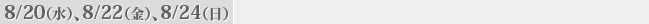 佐伯知香(8/20,24)/高村順子(8/22)/河合眞里(8/23) |