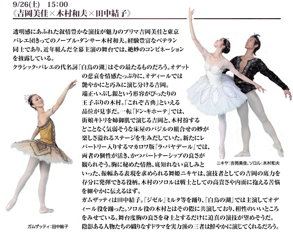 9/27(日)15:00 ニキヤ:斎藤友佳理/ソロル:後藤晴雄 ガムザッティ:高木綾