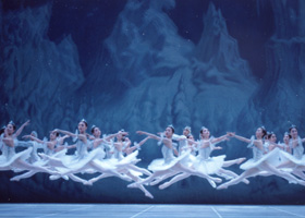 雪の精のワルツが始まり、クララと王子も一緒に踊ります。そして、キラキラとした雪の降る中、雪の精たちに見守られながら、二人は遠い道の世界へと旅立ってゆきます。