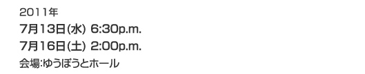 7月13日(水) 6:30p.m. 7月16日(土) 2:00p.m.