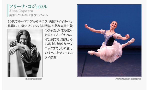 10代でルーマニアからキエフ、英国ロイヤルへと移籍し、19歳でプリンシパル昇格。早熟な完璧主義の少女は、いまや堂々たるトップ・プリマに。本公演では、古典から心理劇、純粋なテクニックまで、その魅力のすべてをチャーミングに披露!