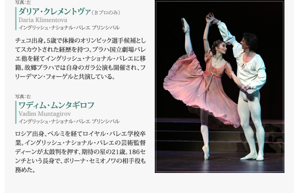 ロシア出身、ペルミを経てロイヤル・バレエ学校卒業。イングリッシュ・ナショナル・バレエの芸術監督ディーンが太鼓判を押す、期待の星の21歳。186センチという長身で、ポリーナ・セミオノワの相手役も務めた。