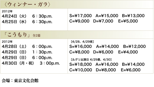 ◆<ウィンナー・ガラ>「こうもり」2演目セット券 [S,A,B券]