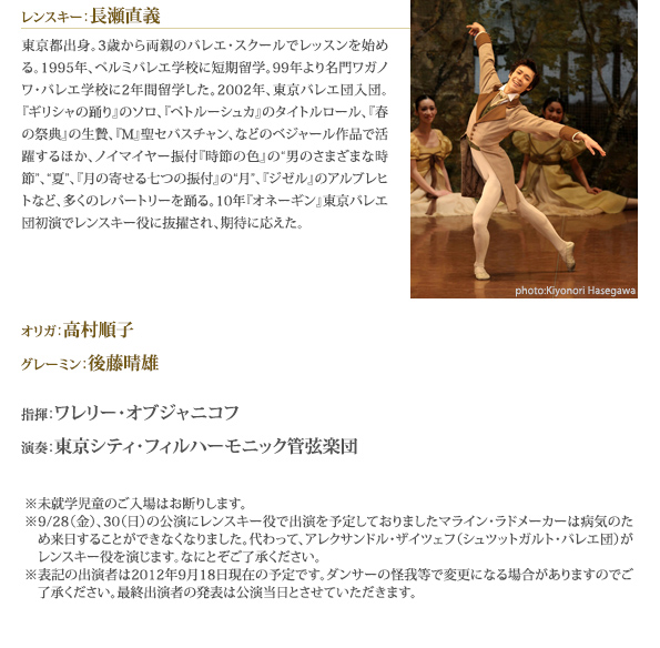 ※未就学児童のご入場はお断りします。 ※表記の出演者は2012年6月12日現在の予定です。ダンサーの怪我等で変更になる場合がありますのでご了承ください。最終出演者の発表は公演当日とさせていただきます。