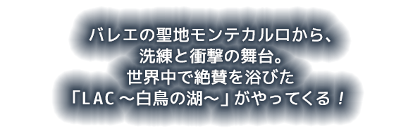 バレエの聖地モンテカルロから、洗練と衝撃の舞台。 世界中で絶賛を浴びた「LAC~白鳥の湖~」がやってくる!