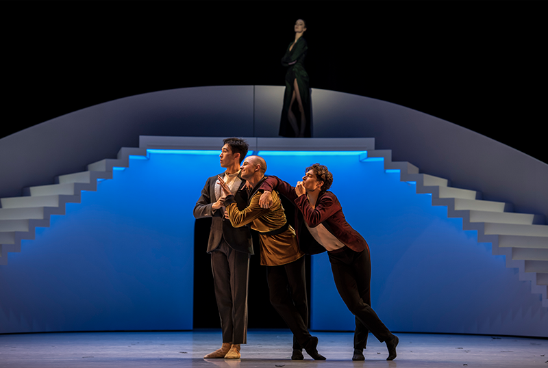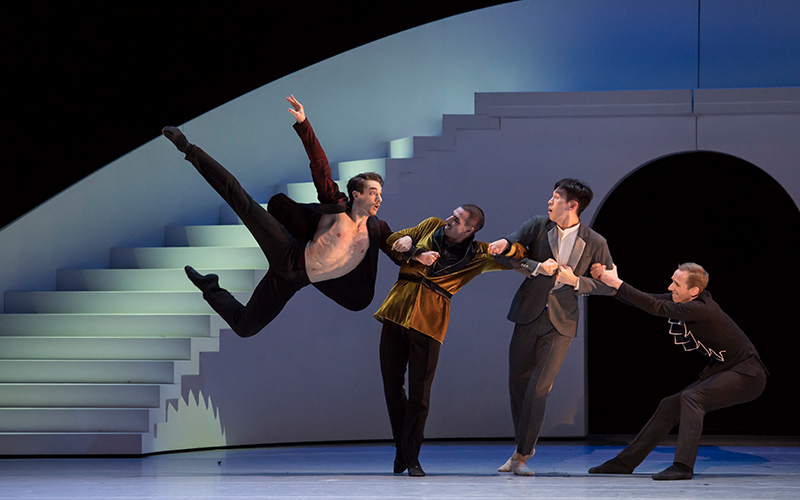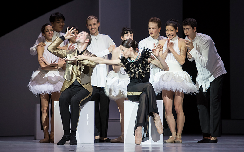 当初ボリショイ・バレエのために創作された本作は、至るところにダイナミックなバレエの技巧を散りばめながら、第1幕の結婚までをコメディタッチで描き、ぞんぶんに笑いを誘います。第2幕はキャタリーナとペトルーチオの結婚生活。ここでマイヨーは、似た者同士の男女の探り合いから和解までを、独創的で官能的な舞踊言語を駆使して描きます。そしてエピローグには、往年のヒット曲「二人でお茶を」を編曲したジャージーな「タヒチ・トロット」に乗せて、すっかりお似合いのカップルになった二人の姿が。見れば必ずハッピーになれることウケ合いの、現代的で洗練された「じゃじゃ馬馴らし」は必見です!