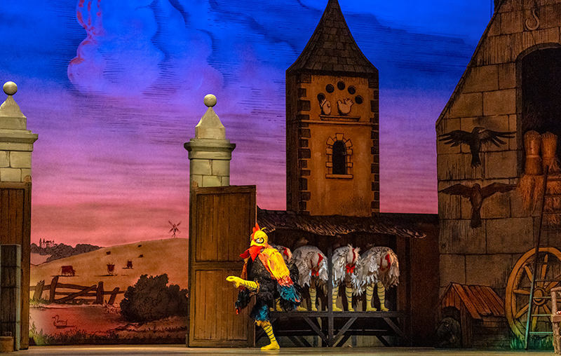 象徴的なのは、リーズと恋人コーラスが愛を奏でる、リボンを使った技巧的で美しいパ・ド・ドゥ。その愛の主題は、やがて収穫祭の華やかなリボンのダンスに展開されていきます。また、祭りでは木靴のタップダンスで沸かせるちょっと強圧的な母親シモーヌ、寂しがりやの婚約者アラン、超絶技巧で幕開けを飾る鶏たちなど、愉快で個性的な脇役たちが物語を盛り上げます。