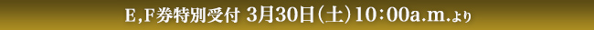 E,F券特別受付3月30日(土)10:00a.m.より 全公演のE,F券を下記の前売所のみにて承ります。1回のお申込みにつき1枚とさせていただきます(席番案内はいたしません)。いずれの前売所も発売初日は店頭での販売はありません。