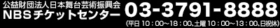 公益財団法人日本舞台芸術振興会NBSチケットセンター:03-3791-8888(平日10:00〜18:00、土曜10:00〜13:00、日祝休)