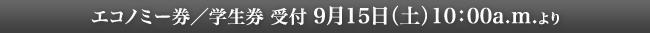 エコノミー券/学生券 受付 9月15日(土)10:00a.m.より