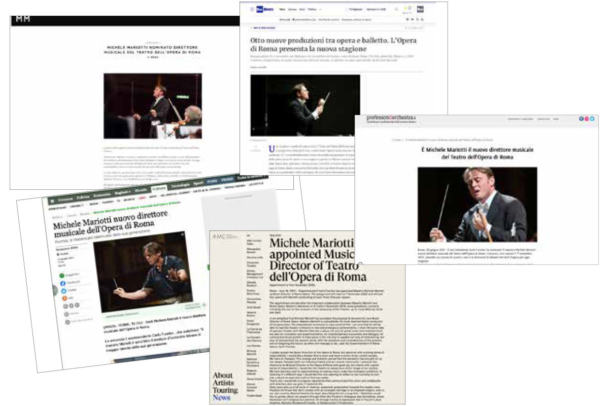 「ローマ歌劇場が、私たちの現在の社会を反映する劇場でありたいと考えていることを嬉しく感じています。パンデミックによって私たちが経験した間に、個人個人の生活や習慣が大きく変わりました。そのなかで私たちは新しい試みに慣れたり、想像を絶する状況で音楽をつくることも行っています。ローマ歌劇場と私の(就任による)新しいオープニングが、私たちの好奇心を反映し、研究への欲求とさらなる新しい試みに変わることを願っています」と、2021年6月の任命発表の際のマリオッティ。