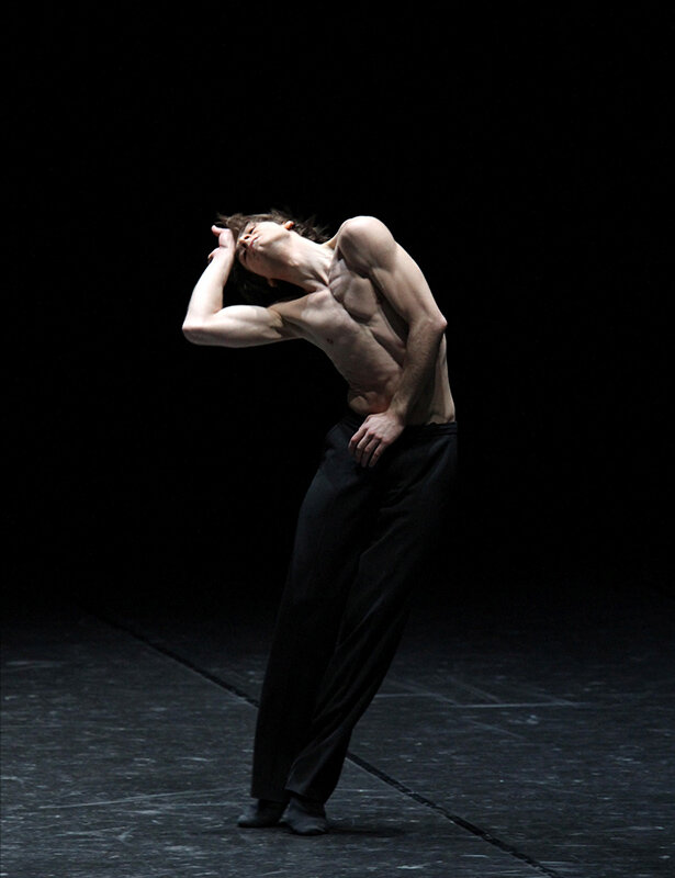 フォーゲルが踊る『モペイ』はコンテンポラリーダンスの鬼才マルコ・ゲッケの振付で、背中を中心とするユニークな動きの連続にぐいぐいと引き込まれる。